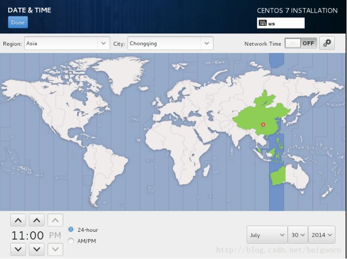 5、選擇LOCALIZATION中的DATA&TIME項,選擇時區(qū)Asia\Chongqing,設置完按Done返回。如下圖: