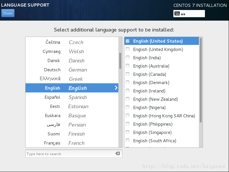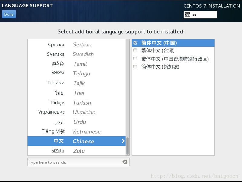 7、設置支持的語言,選擇LOCALIZATION中的LANGUAGE SUPPORT項,本文除了默認的英語,再選擇了中文,設置完按Done返回。如下圖: