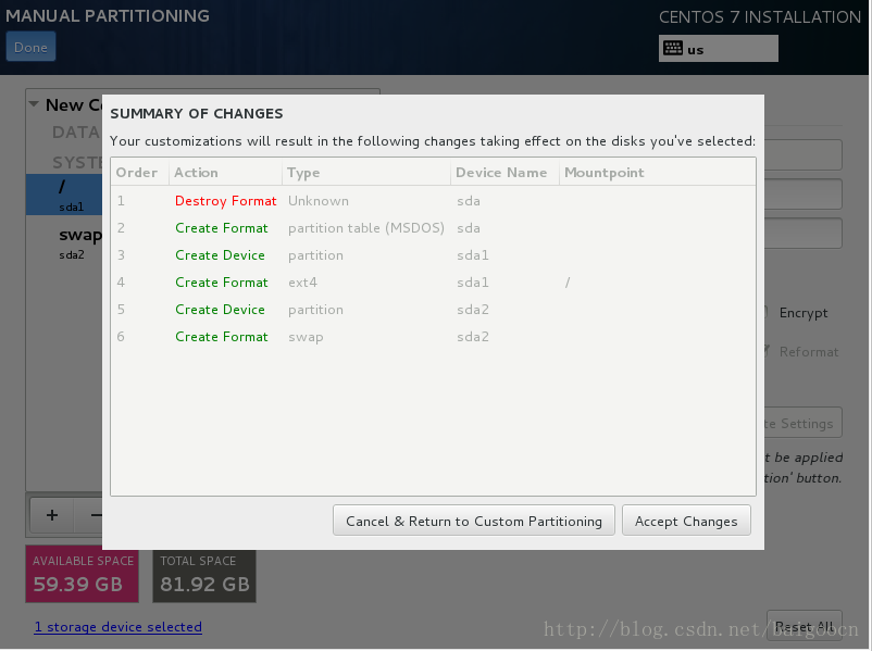 分區(qū)完成后,選擇Done確認,彈出的對話框中選擇Accept Changes,如下圖所示: