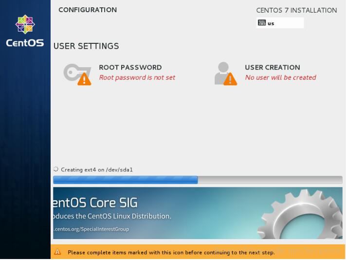 14、完成以上幾步,基本配置已經(jīng)完成。此時主界面中的Begin installation按鈕將可選,點擊按鈕進行安裝。進入安裝界面時,可以看見"USER CREATION"項,沒有完成安裝前,可以進一步配置用戶設置,如下圖所示: