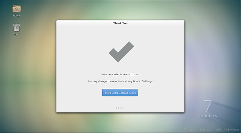 至此,CentOS 7的安裝已經(jīng)完成,桌面是不是很漂亮呢!棒極了!
