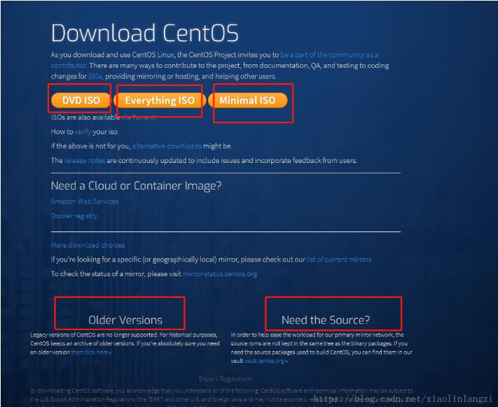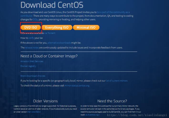 左邊為"Older Versions",為老版本下載區(qū),你可以通過點擊"then click here"鏈接進入老版本(CentOS 7.x以下版本)鏡像文件的下載目錄。