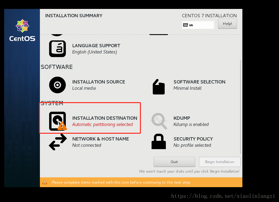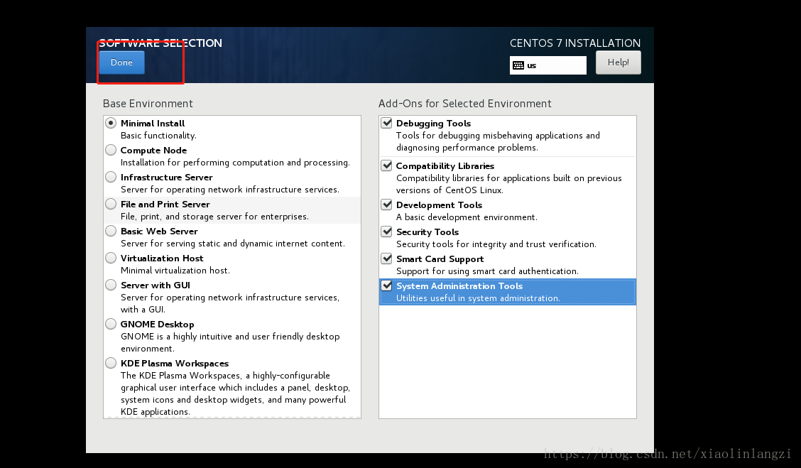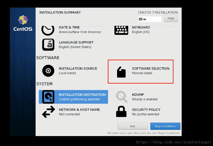 軟件SOFTWARE”-“軟件選擇SOFTWARE SELECTION”,我們使用的是Minimal版本,默認是最小化安裝