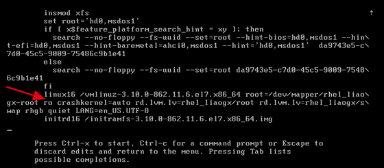 光標(biāo)往下,找到Linux16,ro的位置