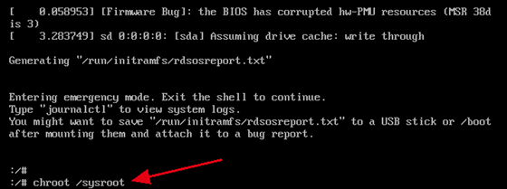 重啟客戶機(jī)后進(jìn)入如下界面,執(zhí)行chroot /sysroot