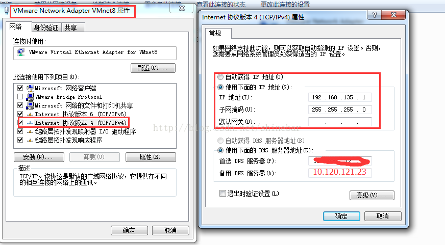 右擊VMnet8虛擬網(wǎng)卡,屬性->ipv4配置如圖3: