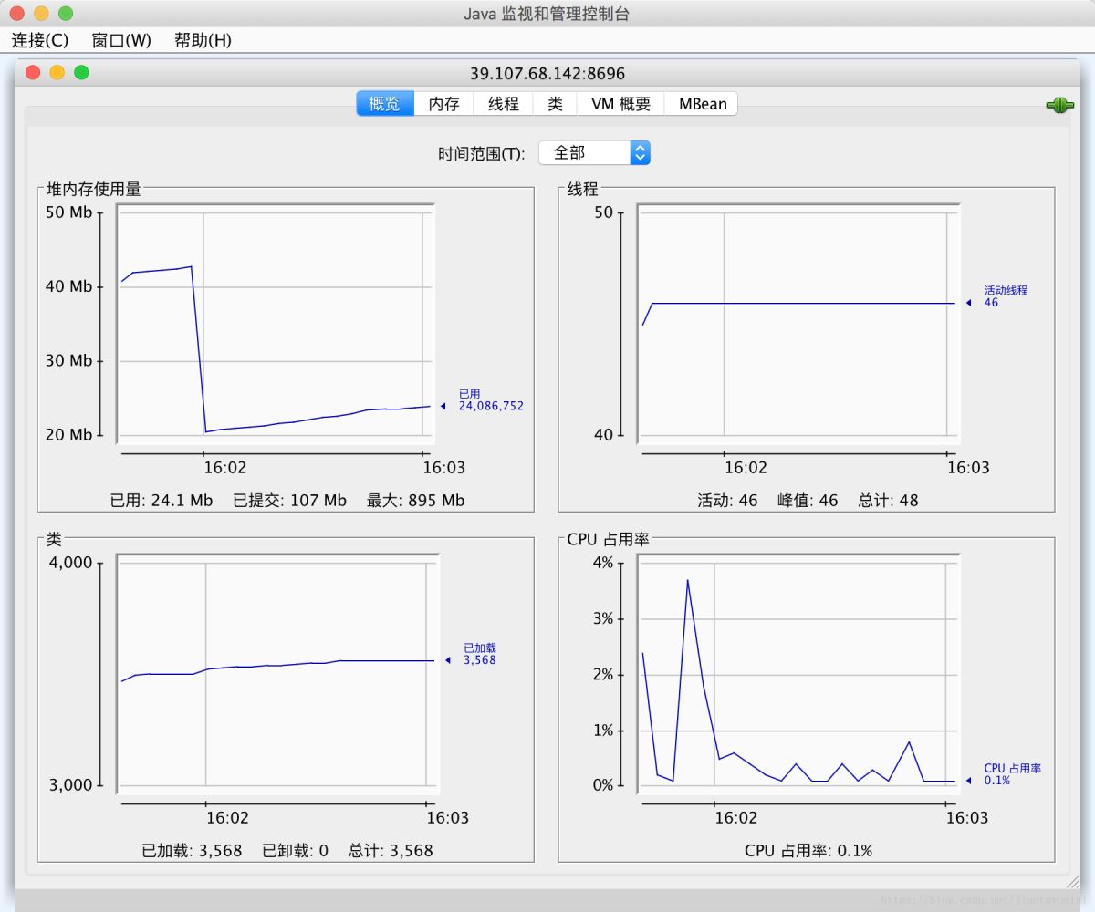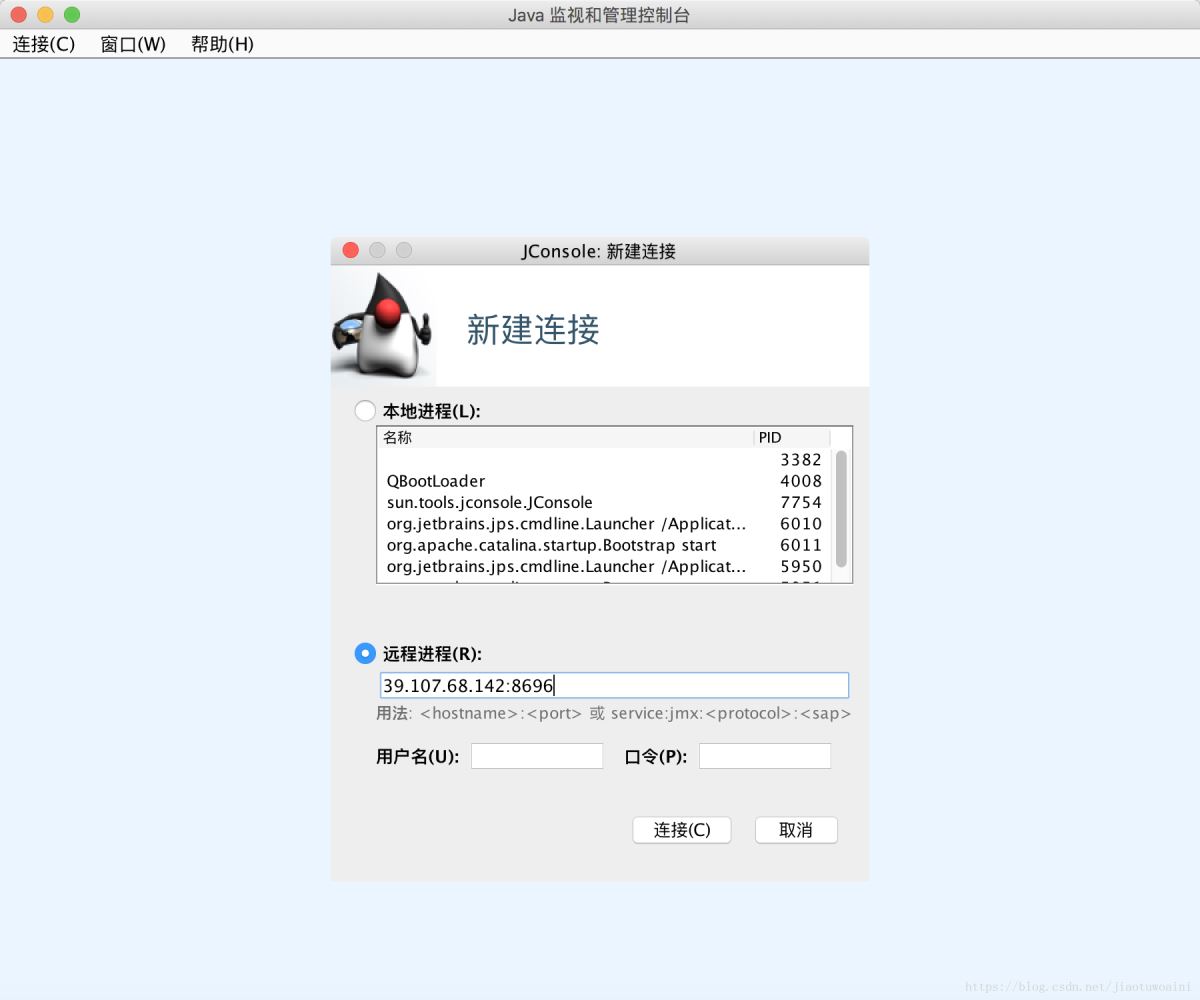 5.打開本地jconsole監(jiān)控遠程服務(wù)