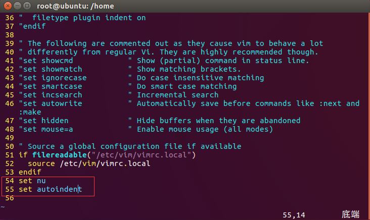 打開vimrc文件,最下面添加set nu,保存就可以添加行號了,set autoindent是自動換行