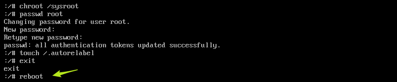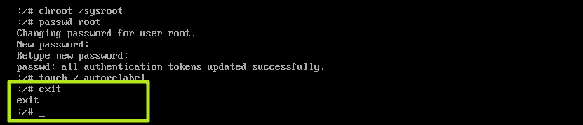 第四個里程碑 -- 用 "chroot /sysroot " 命令進(jìn)入系統(tǒng);