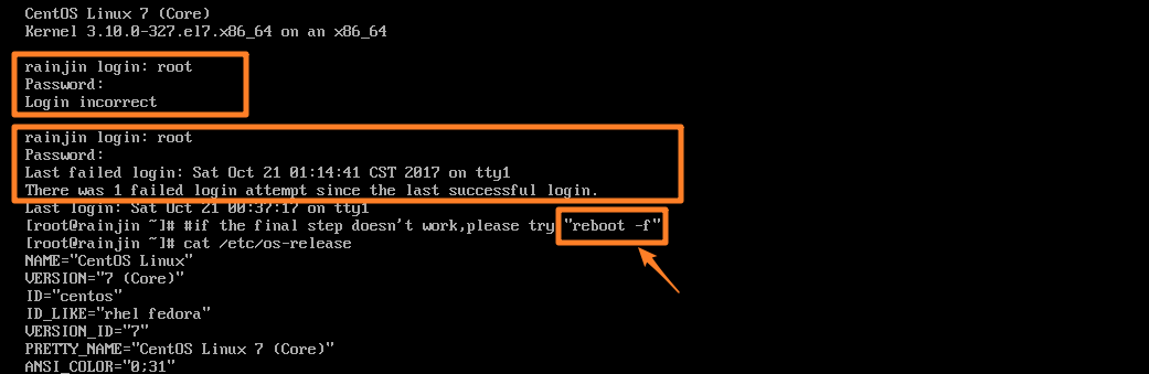 CentOS7.2 忘記root密碼及重置root密碼的簡單處理方法