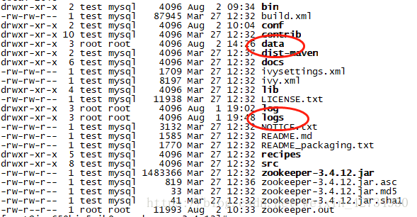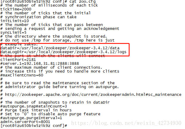 4.編輯zoo.cfg,增加2個(gè)目錄在根目錄