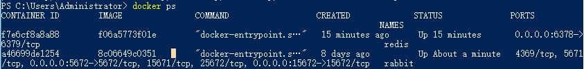 這里有兩個-p分別指定了兩個端口的映射,如果有更多端口就依次疊加映射就行,執(zhí)行成功顯示