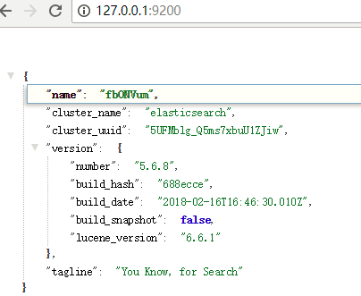 運行成功后,可以直接在瀏覽器訪問http://127.0.0.1:9200/,得到如下成功界面