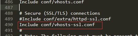 ?。?)找到#Include conf/extra/httpd-ssl.conf這句話,這里我們就不用自帶的文件了,我是新建了個(gè)文件