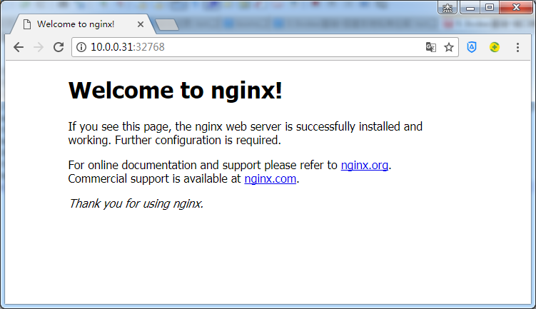 通過docker ps可以看到nginx_1容器的80端口被映射到本機的32768端口上。訪問宿主主機的32768端口就可以訪問容器內(nèi)的應用程序提供的Web界面: