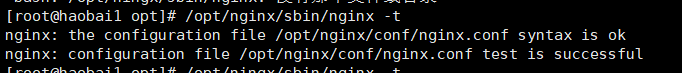 配置測試: /opt/nginx/sbin/nginx -t 出現(xiàn)如下界面說明配置沒問題
