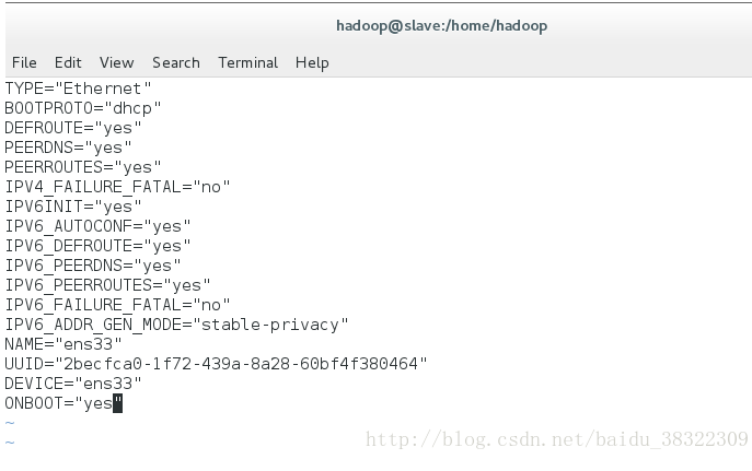vi /etc/sysconfig/network-scripts/ifcfg-ens33