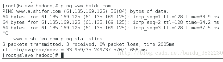 然后‘ping'一下,真實(shí)的網(wǎng)址:‘www.baidu.com',如下則配置成功,不需要第7步。