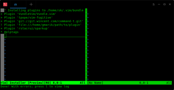 類似的,在你的系統(tǒng)中安裝所有想要的插件。一旦安裝成功,使用下列命令刪除 Vundle 緩存:
