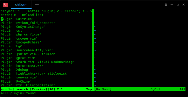 這樣將會列出包含關(guān)鍵詞 “vim” 的插件。