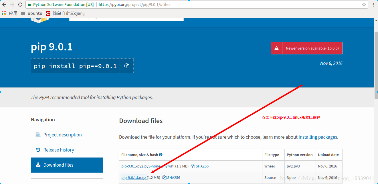 1 從pip官網(wǎng)下載壓縮包pip-9.0.1.tar.gz