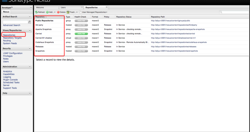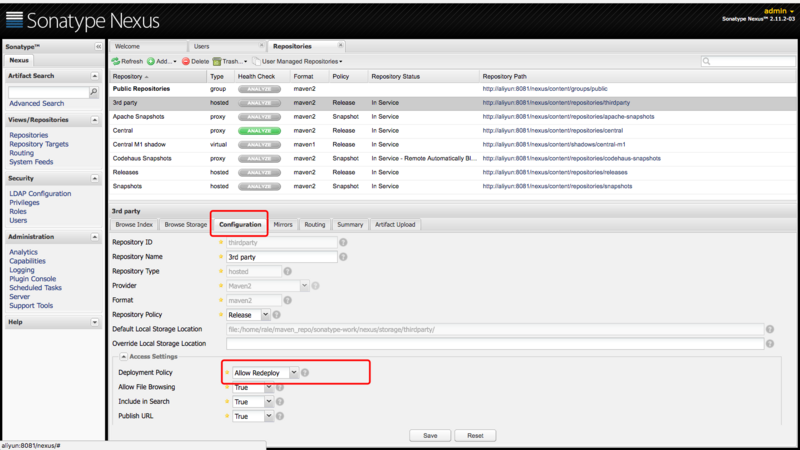 admin:該用戶擁有Nexus的全部權(quán)限,默認(rèn)密碼為admin123。