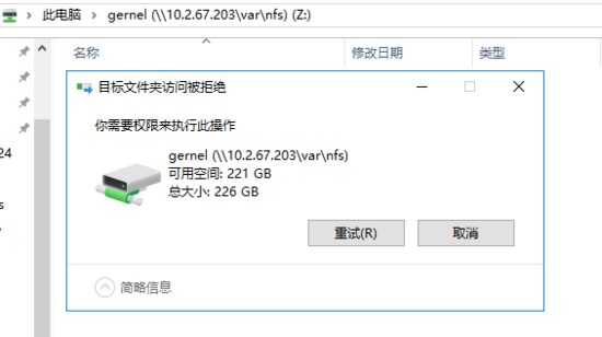 gernel 目錄的屬主(組)為 nobody:nogroup(65534:65534),所以雖然該目錄為讀寫權(quán)限,非 root 用戶無法執(zhí)行新建操作。而 root 用戶由于 NFS 默認(rèn)的安全機(jī)制,會(huì)自動(dòng)映射到 nobody:nogroup。