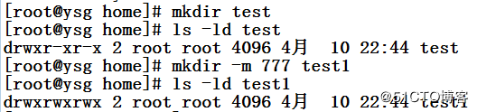 可以看到,目錄初始權(quán)限為755,使用 -m 參數(shù)使權(quán)限變?yōu)榱?77.