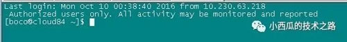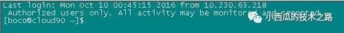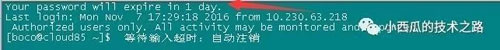 注:上面之所以在boco用戶下寫文件,是因為我要批量做,而我們的root用戶不能直接登錄,所以,如果你們是單臺機器或者root可以直接登錄的話,就直接在root用戶下操作就行。今天上去機器時候發(fā)現(xiàn)提示如下: