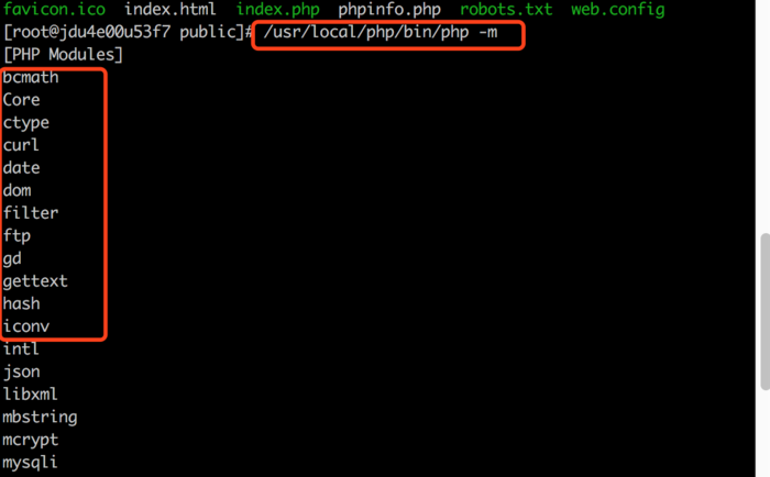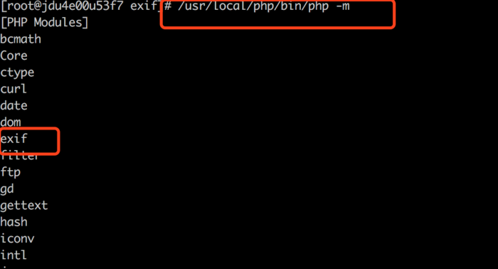 下面我們就來查看是否已經(jīng)成功安裝了exif擴(kuò)展,還是使用上面開始查看已經(jīng)安裝的模塊的命令,顯示如圖: