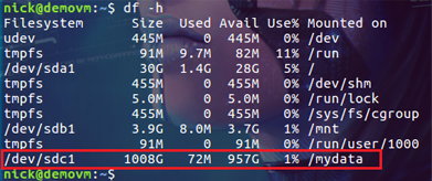 sudo mkdir /mydata && sudo mount /dev/sdc1 /mydata