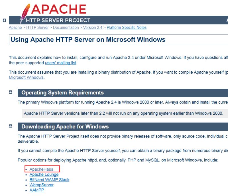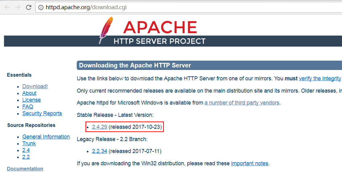 1、點擊鏈接http://httpd.apache.org/download.cgi,找到所需版本,如下圖位置: