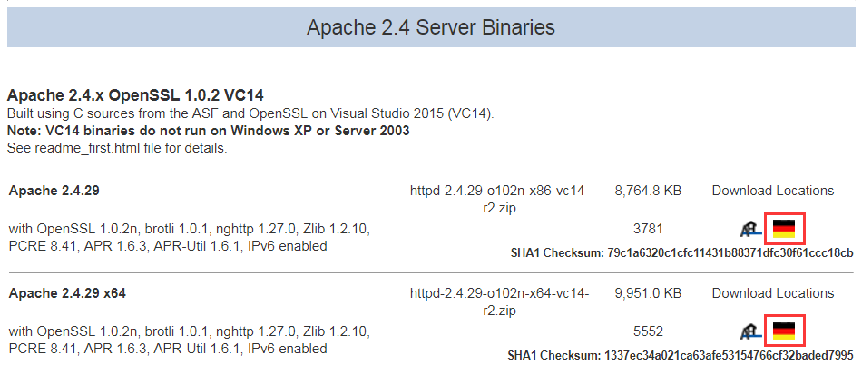 4、找到Apache 2.4 Server Binaries欄,分別有32位和64位,點擊圖標下載,如下圖位置:
