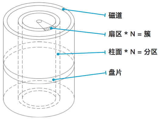 一個硬盤有多張盤片疊成,不同盤片有編號每張盤片上的存儲顆粒成環(huán)形一圈圈地排布,每一圈稱為磁道,有編號每條磁道上都有一圈存儲顆粒,每512*8(512字節(jié),0.5KB)個存儲顆粒作為一個扇區(qū),扇區(qū)是硬盤上存儲的最小物理單位 N個扇區(qū)可以組成簇,N取決于不同的文件系統(tǒng)或是文件系統(tǒng)的配置,簇是此文件系統(tǒng)中的最小存儲單位所有盤面上的同一磁道構(gòu)成一個圓柱,稱為柱面,柱面是系統(tǒng)分區(qū)的最小單位