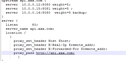 因為做負載的服務為API服務,在這里conf文件的名字就叫做api.xxx.com.conf,打開文件的配置如下: