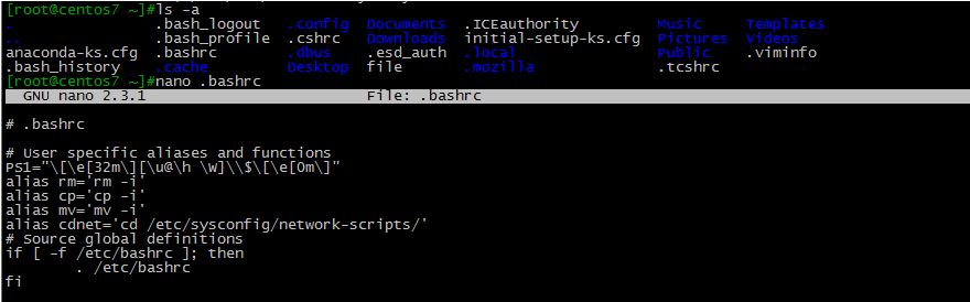 當(dāng)然現(xiàn)在是可以了,但是如果你退出了,就沒有了,你要永久保存還需要把這個(gè)命令寫到文本里面,通常是定義在自己的家目錄里,因?yàn)槊總€(gè)人的個(gè)人習(xí)慣是不同的,定義的別名也不同,所以自己創(chuàng)建自己習(xí)慣的別名就好了,用ls -a 可以看到一個(gè)目錄,.bashrc這個(gè)目錄,我們就需要把剛剛創(chuàng)建的那個(gè)別名命令輸入到.bashrc這個(gè)目錄里,輸入命令nano .bashrc進(jìn)入這個(gè)文本,把剛創(chuàng)建的命令按它的順序復(fù)制或者在輸入一遍,CTRL+o保存,然后退出CTRL+x,一般剛剛定義完別名是不會(huì)立馬生效的,一般直接exit退出就可以立即生效了,也可以用.來立即生效,輸入. .bashrc就生效了,然后可以用alias來查看剛創(chuàng)建的別名。
