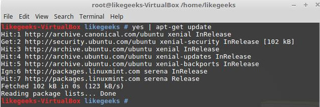 如果大家希望以自動(dòng)方式對請求回復(fù)yes,則可使用:yes | apt-get update。