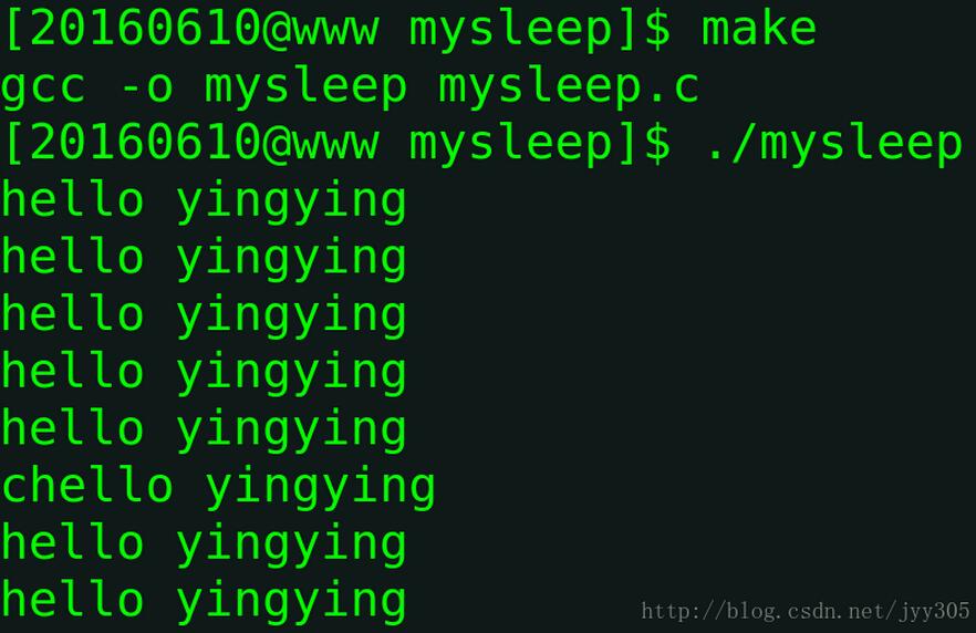示例程序代碼:模擬實(shí)現(xiàn)sleep使當(dāng)前進(jìn)程每2秒打印”hello yingying\n”