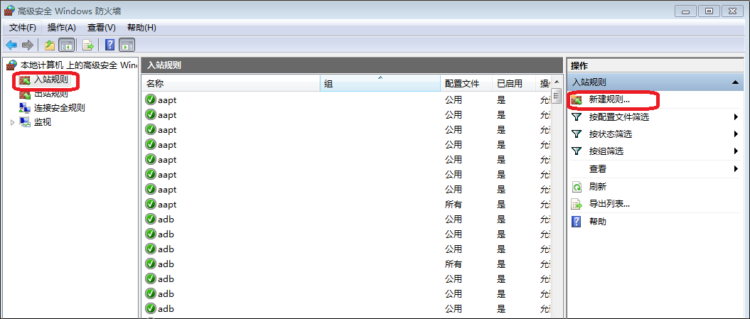 步驟3:在"高級(jí)安全 Windows 防火墻"界面中,分別單擊"入站規(guī)則"->"新建規(guī)則..."。