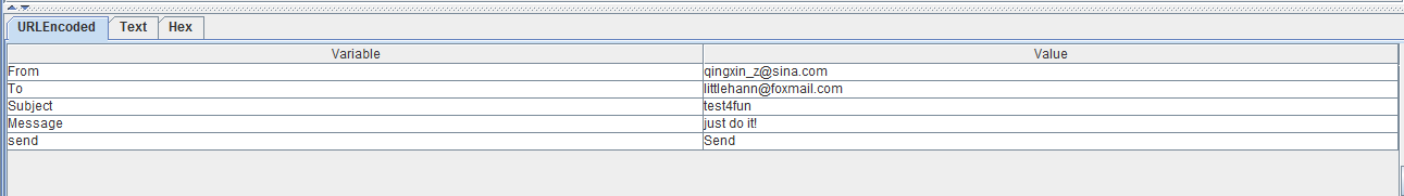 但是有朋友要問(wèn)了,問(wèn)題在哪里?主要的問(wèn)題對(duì)用戶的輸入沒(méi)有做必要的驗(yàn)證和過(guò)濾,正如《白帽子講web安全》里說(shuō)到的,任何的安全問(wèn)題可以歸結(jié)為信任的問(wèn)題,這里存在的問(wèn)題就是程序代碼對(duì)用戶的輸入無(wú)限制的信任。正如你所看到的在第三部分代碼,發(fā)送郵件功能代碼從用戶接收輸入(包括郵件主題、消息和來(lái)源等),參數(shù)沒(méi)有過(guò)濾和驗(yàn)證。因此,惡意攻擊者可以任意控制這些參數(shù)的值,用戶發(fā)送inject攻擊。
