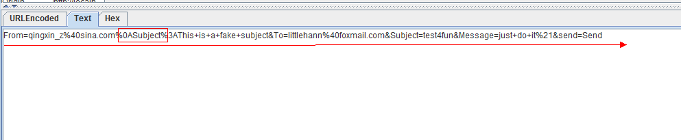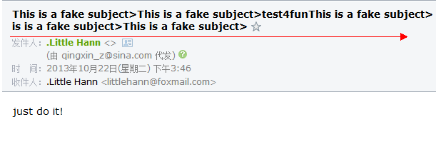 攻擊者注入的假的主題subject將被添加到原來(lái)的主題中并且在某些情況下將取代原本的主題subject。這取決于郵件服務(wù)行為。即代碼編寫的容錯(cuò)性,當(dāng)參數(shù)中出現(xiàn)兩個(gè)subject的時(shí)候代碼是選擇丟棄還是后者覆蓋。