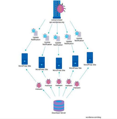 按照Wordfence的說(shuō)法,黑客只需要針對(duì)api.wordpress.org一擊,就能讓全球超過(guò)1/4的網(wǎng)站感染惡意程序。
