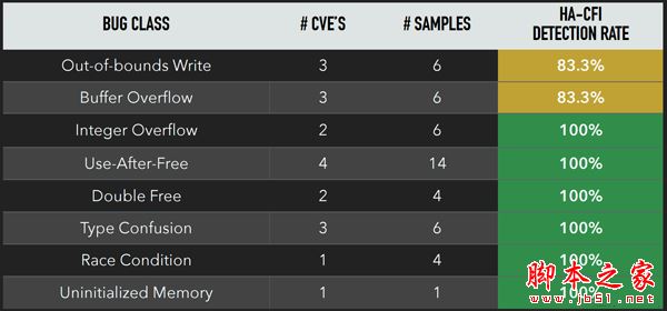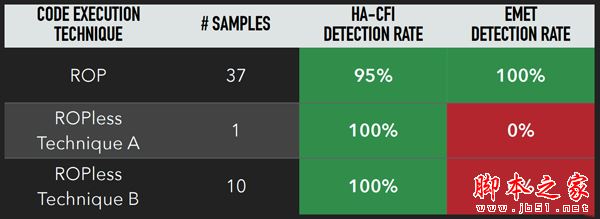 Cody Pierce等人選取了多個經(jīng)典的CVE漏洞,與EMET進行了比較: