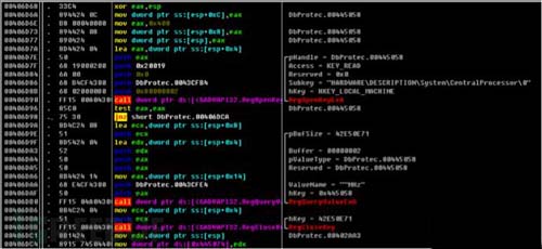 通過(guò)對(duì)程序逆向分析,發(fā)現(xiàn)程序運(yùn)行后會(huì)獲取主機(jī)的信息(系統(tǒng)版本、CPU架構(gòu),網(wǎng)卡信息,MAC地址),如圖4、5、6、7所示: