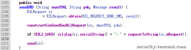 圖6 Android vendor RIL中的短信發(fā)送函數(shù)