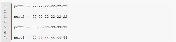 現(xiàn)在有port1和port2對(duì)應(yīng)的MAC地址是一樣的。如果現(xiàn)在網(wǎng)關(guān)(假設(shè)現(xiàn)在port4連接的是網(wǎng)關(guān))來(lái)了一個(gè)數(shù)據(jù)包是給機(jī)器B(IP是192.168.1.22,MAC地址為22-22-22-22-22-22),交換機(jī)會(huì)順序查詢此刻的CAM表來(lái)確定該數(shù)據(jù)包轉(zhuǎn)發(fā)去哪個(gè)端口!