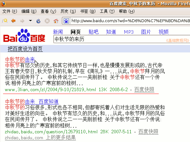 3)出來一個搜索結果頁面,里面有許多項,點每一項的標題就可以進入相應的網(wǎng)頁里,