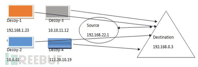 以下網絡抓包顯示多個誘餌將欺騙防火墻。