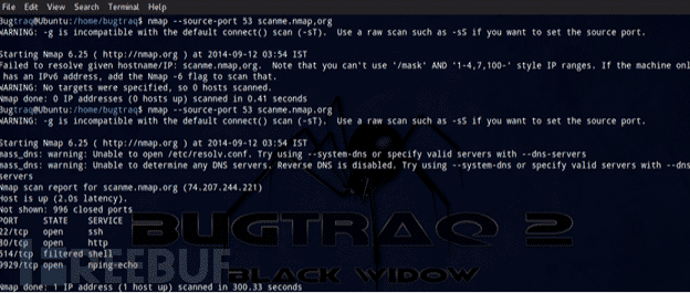 每個TCP數據包帶有源端口號。默認情況下Nmap會隨機選擇一個可用的傳出源端口來探測目標。該–source-port選項將強制Nmap使用指定的端口作為源端口。這種技術是利用了盲目地接受基于特定端口號的傳入流量的防火墻的弱點。端口21(FTP),端口53(DNS)和67(DHCP)是這種掃描類型的常見端口。