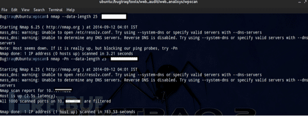 附加隨機數據長度,我們也可以繞過防火墻。許多防火墻通過檢查數據包的大小來識別潛伏中的端口掃描。這是因為許多掃描器會發(fā)送具有特定大小的數據包。為了躲避那種檢測,我們可以使用命令–data-length增加額外的數據,以便與默認大小不同。在下圖中,我們通過加入25多個字節(jié)改變數據包大小。